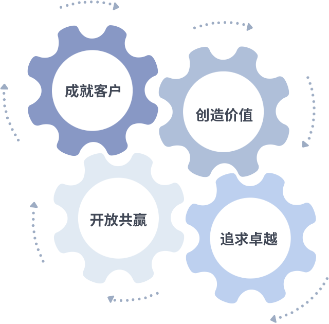 成就客户是一切决策的出发点,创造价值是衡量所有工作的标准,追求卓越是PG国际做事做人的态度,开放共赢是PG国际的格局也是最终的结果。价值观的齿轮环环相扣,推动着组织里的每个人不断向前。